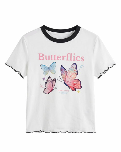 《泰國製造》*online 優惠*蝴蝶圖案木耳邊tee